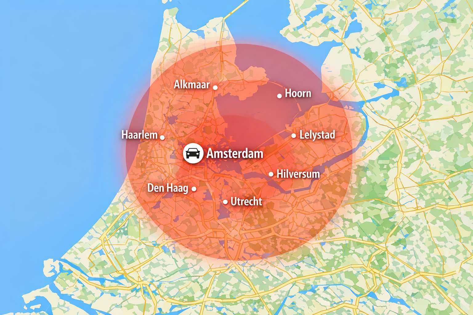 De hier genoemde tarieven gelden voor alle klanten die de training willen volgen, binnen een uurtje rijden vanaf Amsterdam. Zie de kaart hieronder voor een indicatie. Ligt jouw boot iets verder, dan wordt er – in overleg – extra brandstofkosten in rekening gebracht.